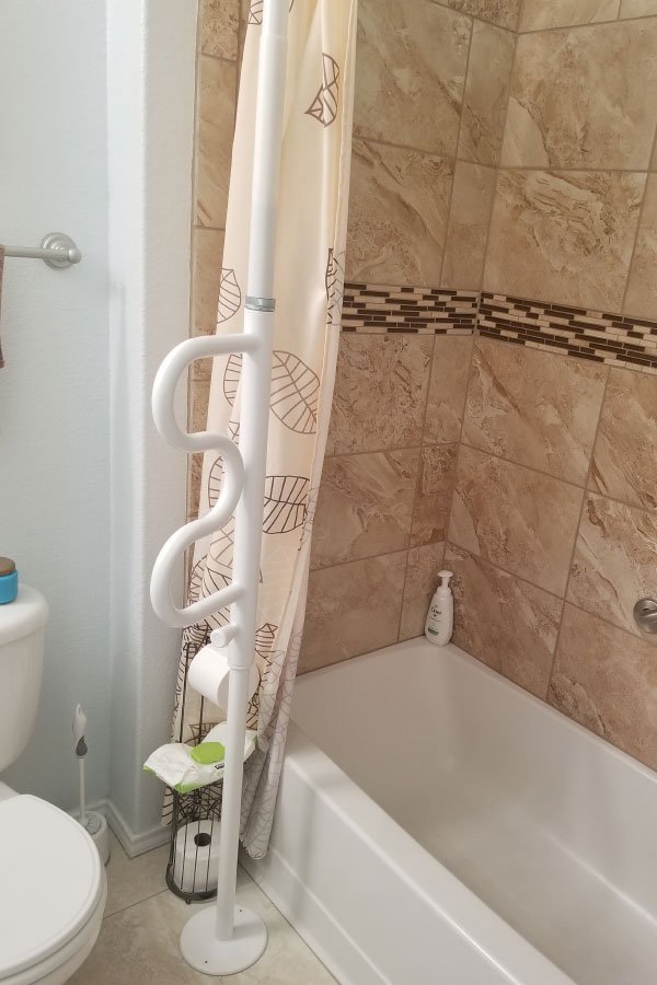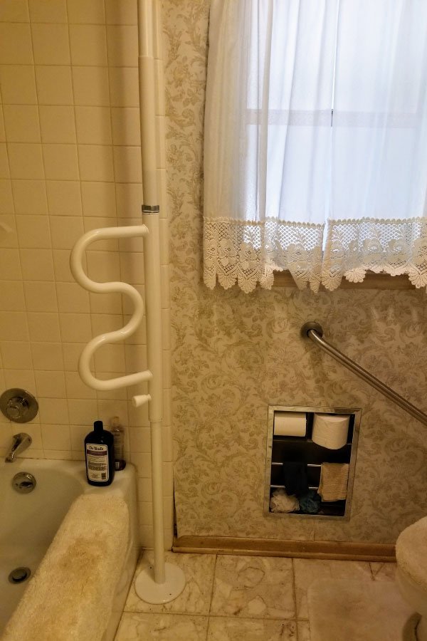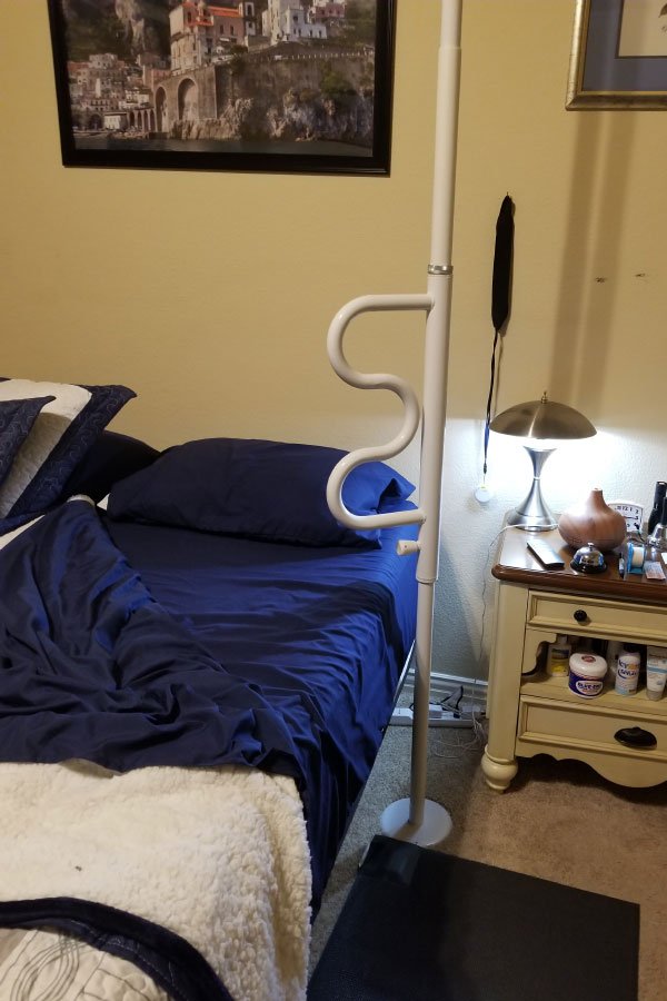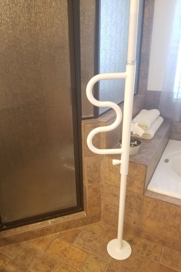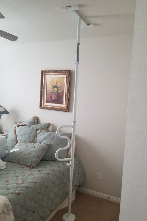 Take a look at our transfer poles installed in bedrooms and bathrooms. These provide added stability when standing, sitting, or transitioning between surfaces.